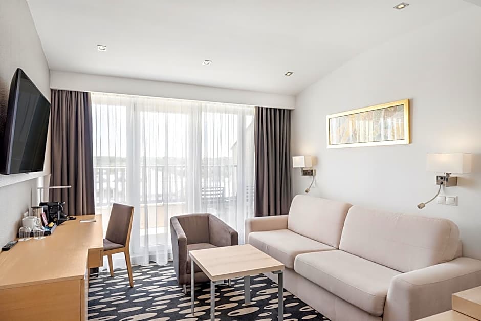 The air-conditioned suite features 1 bedroom and 1 bathroom with a bath and a shower. The suite has carpeted floors, a seating area with a flat-screen TV with satellite channels, a mini-bar, a tea and coffee maker, as well as a wardrobe. The unit offers 2 beds.